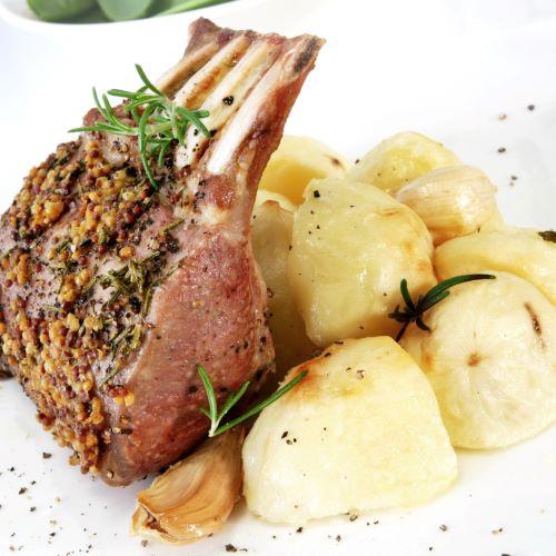 - Herb Crusted Rack of Lamb (w/ Port Wine Gravy & Mint Jelly)