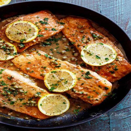 • Pan-seared Atlantic Halibut (w/ Lemon, Capers & Thyme) (GF)